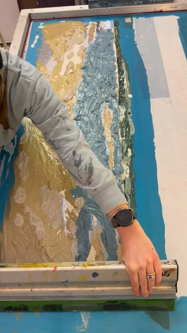 I first fell in love with screen printing at university while training as a print designer, and over time it’s become the foundation of my work. Combining my love of the coast with the process of printmaking, I began creating seascapes that blend layers of screen print and paint to capture light, movement, and the feeling of being close to nature.