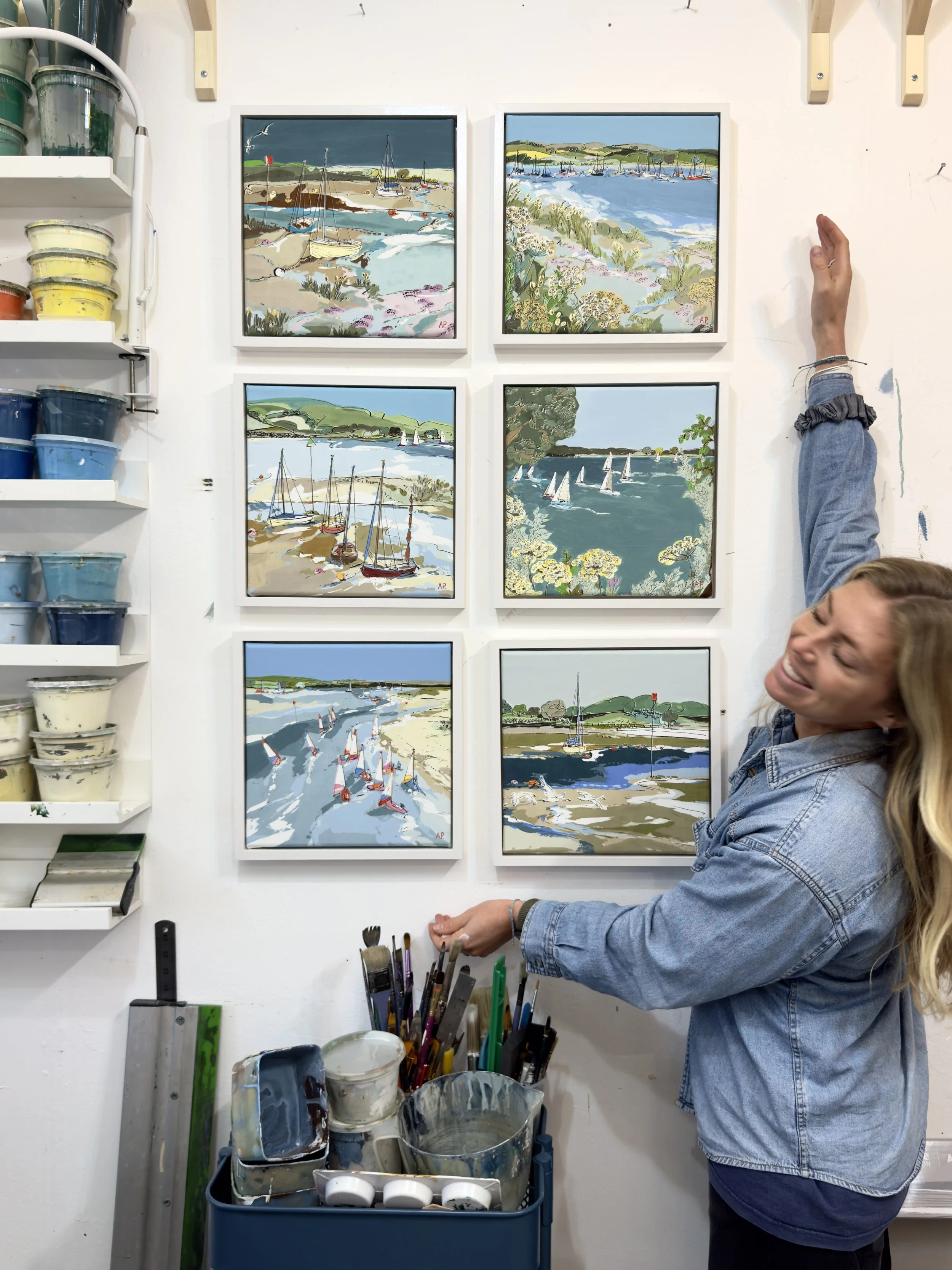 These pieces mark my return to painting after time away traveling, and it’s been such a joy settling back into the rhythm of colour, movement, and sea-inspired scenes. Each one draws on memories of the South Coast and the shifting light and energy that keeps pulling me back to there.