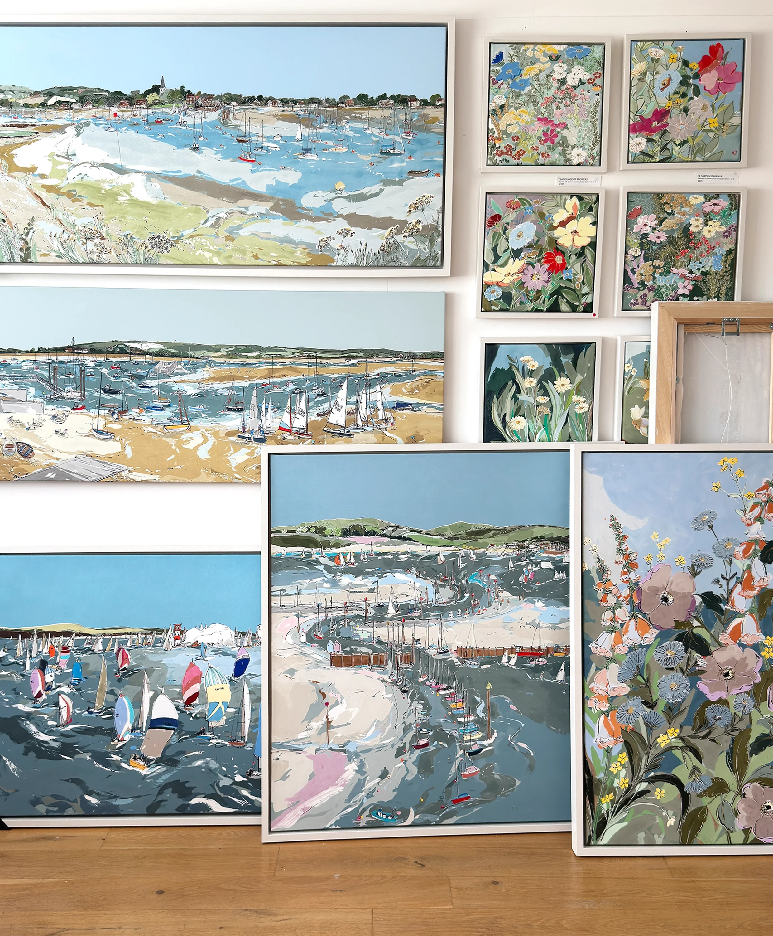 I’m a contemporary screen-print artist based in South London, working from my studio at Wimbledon Art Studios. I grew up on the South Coast, and it remains my biggest source of inspiration. I create expressive works that capture the movement, energy and atmosphere of the British landscape — from tidal harbours and racing yachts on the Solent to the quiet beauty of gardens and meadows.