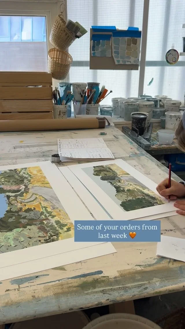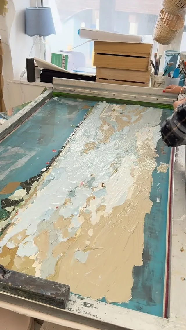 I first fell in love with screen printing at university while training as a print designer, and over time it’s become the foundation of my work. Combining my love of the coast with the process of printmaking, I began creating seascapes that blend layers of screen print and paint to capture light, movement, and the feeling of being close to nature.